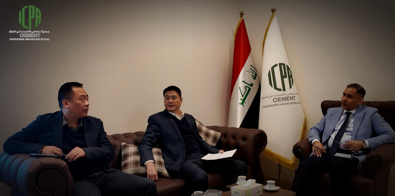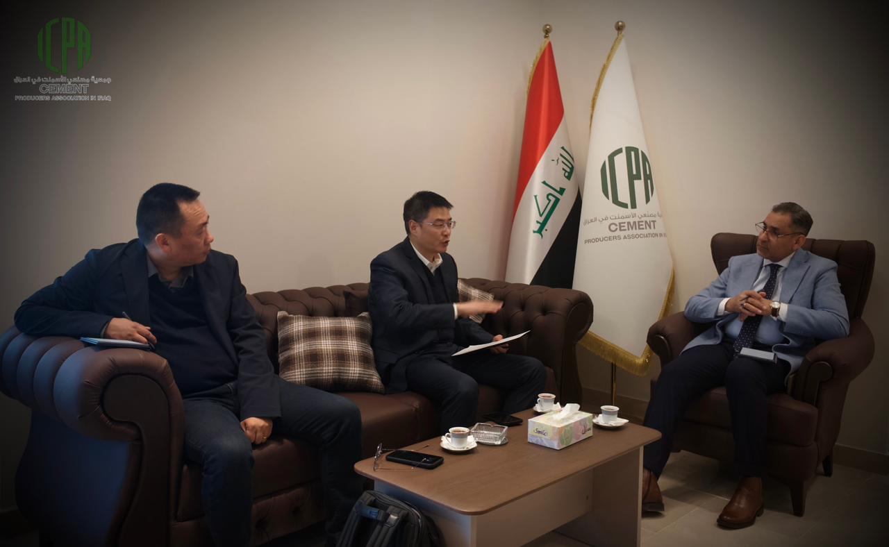 The Cement Producers Association in Iraq held a meeting with representatives of Sinoma Suzhou (China), Mr. Chin Jin and Mr. Cruise, in the presence of Eng. Ammar Al-Saedi and Dr. Maher.