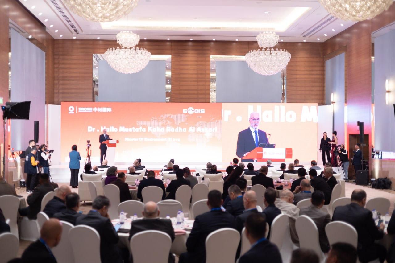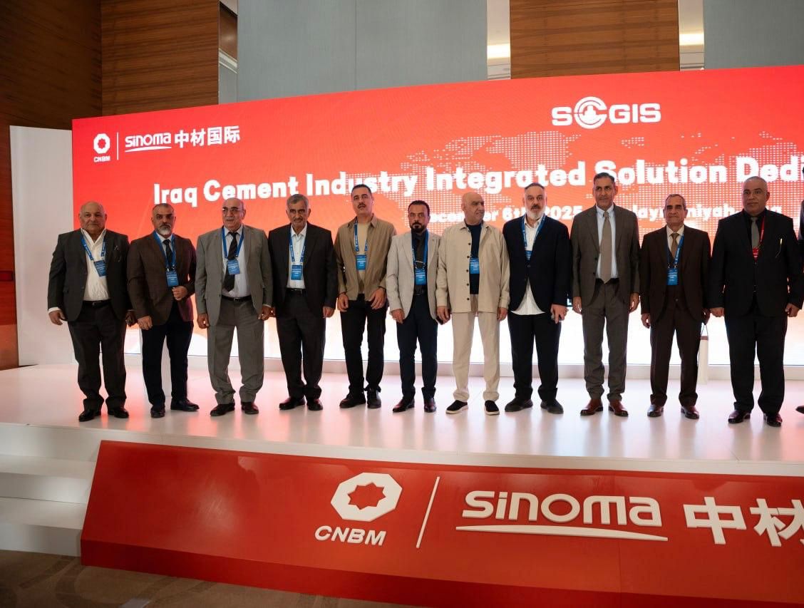 The Iraqi Cement Manufacturers Association, in cooperation with the Chinese company Sinoma, held its first conference, "Integrated Solutions for the Cement Industry in Iraq." The Iraqi Cement Manufacturers Association held its joint conference with the Chinese company Sinoma Suzhou at the Rotana Hotel in Sulaimaniyah on December 6, 2025. The conference was attended by His Excellency the Minister of Environment, Dr. Helou Al-Askari, the Director General of the Economic Department at the National Investment Commission and its staff, the Dean of the College of Chemical Engineering at the University of Technology, university professors, representatives from the General Company for Carbon Economics at the Ministry of Environment, members of the administrative board of the Iraqi Cement Manufacturers Association, and cement plant staff. Also present from Sinoma were Mr. Wang Jun, Chairman of the Board of Directors, members of the board, and a large number of the company's staff working in all cement plants in Iraq. At the beginning of the conference, the President of the Association, Engineer Ammar Al-Saadi, delivered a welcoming address and a brief overview of the association and its activities. His Excellency the Minister of Environment then delivered a speech in which he praised the association's efforts and the significant development achieved in the cement industry sector in Iraq, thanks to the cooperation and concerted efforts of all involved. Private sector investors, particularly those committed to environmental protection and carbon emission reduction, were commended. The ongoing collaboration between the General Company for Carbon Economics and the Iraqi Cement Manufacturers Association to develop a decarbonization roadmap for the Iraqi private cement sector was praised, along with the registration of carbon emission reduction projects with the company. The Association's president delivered a lecture on the Iraqi cement industry's 2030 vision, current production volume, and projected surplus over the next five years.